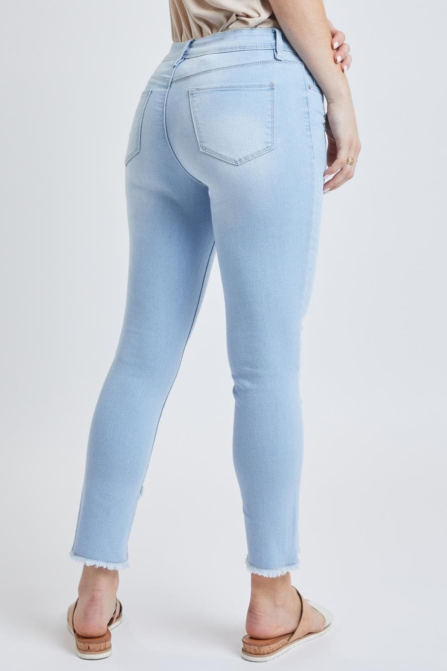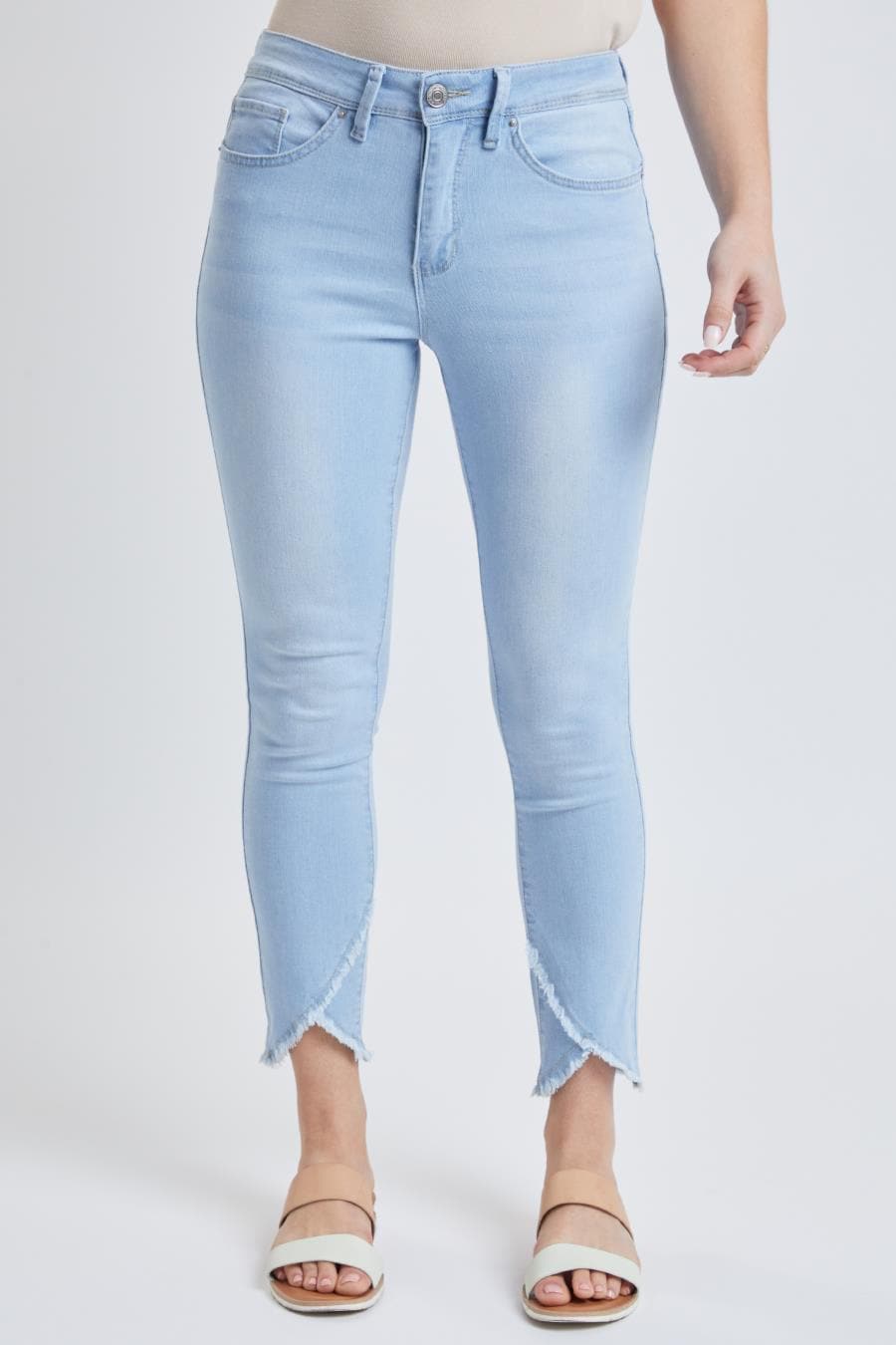 • Why You'll Love It: Stretchy trendy tulip shape frayed hem ankle jean.