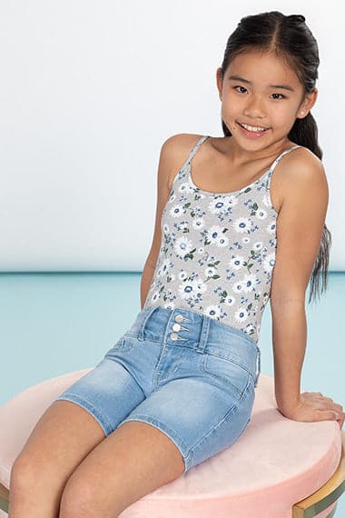 Our Girls' 3 Button Basic Bermuda. Featuring 5 pockets construction with faux front pockets, triple-button closure with front zip, wide waistband for comfort, and belt loops.