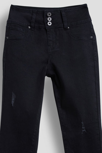 Vintage-inspired and totally comfy! Our Girl's 3-Button Basic Skinny Jean With Faux Front Pockets provides a retro twist on your favorite skinny jeans! Featuring an exposed 3-buttonfly, subtle fading, and front whiskering for a perfectly “lived-in” look. You’ll love how stretchy and comfortable these jeans are-perfect for all-day wear! Pair these with your favorite cardigan and sneakers for a classic look!