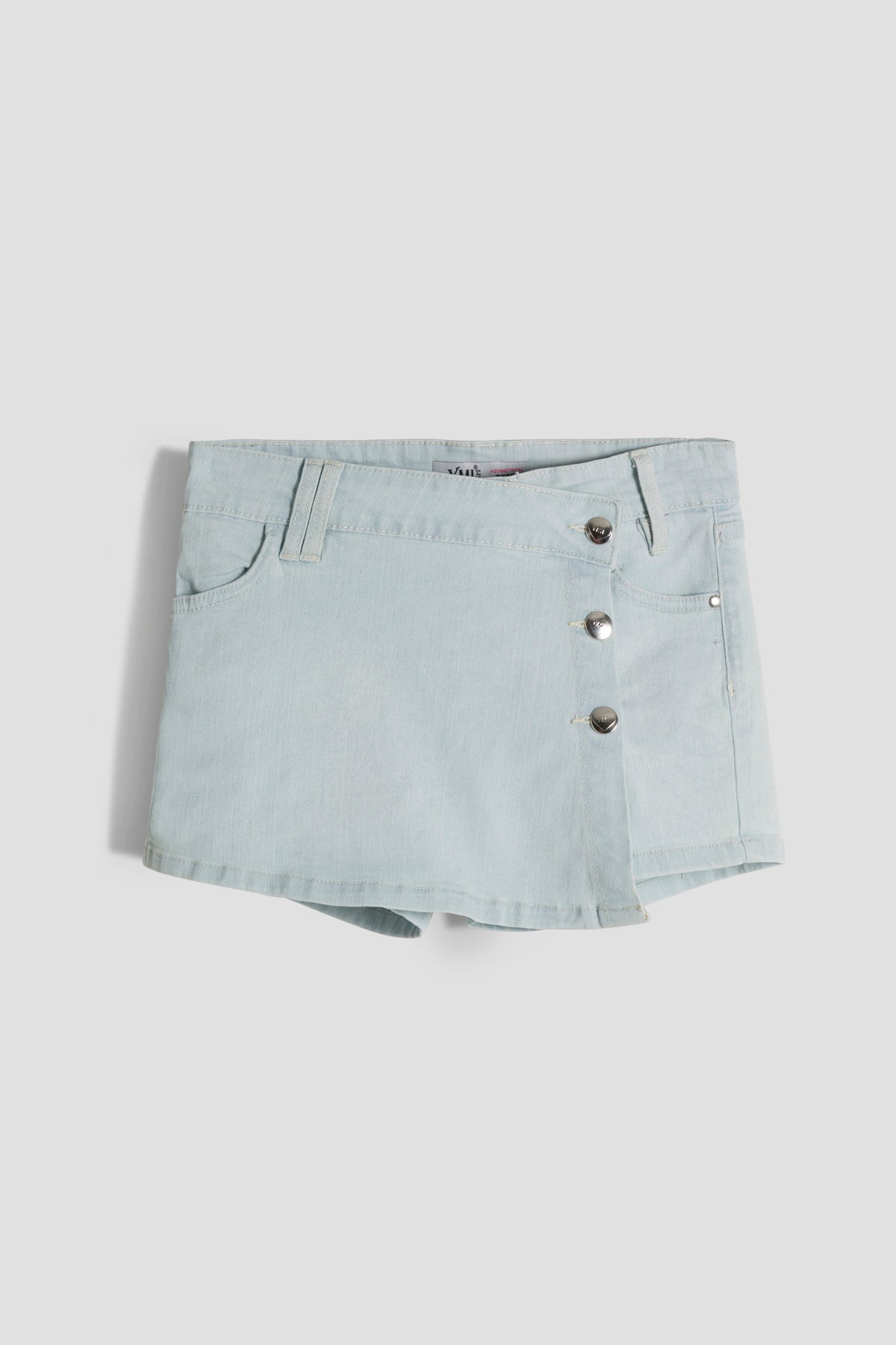Hello, trendsetter! Our Girls Assymetric Denim Skort is both stylish and comfortable, making it perfect for any occasion. This skort features a front flap skirt and built in shorts so you can move freely. Designed with 3-buttons and fading throughout for a trendy look, while the asymmetrical design adds some edge. Pair it with her favorite graphic tee and sneakers for a casual day out, or dress it up with a blouse and sandals!