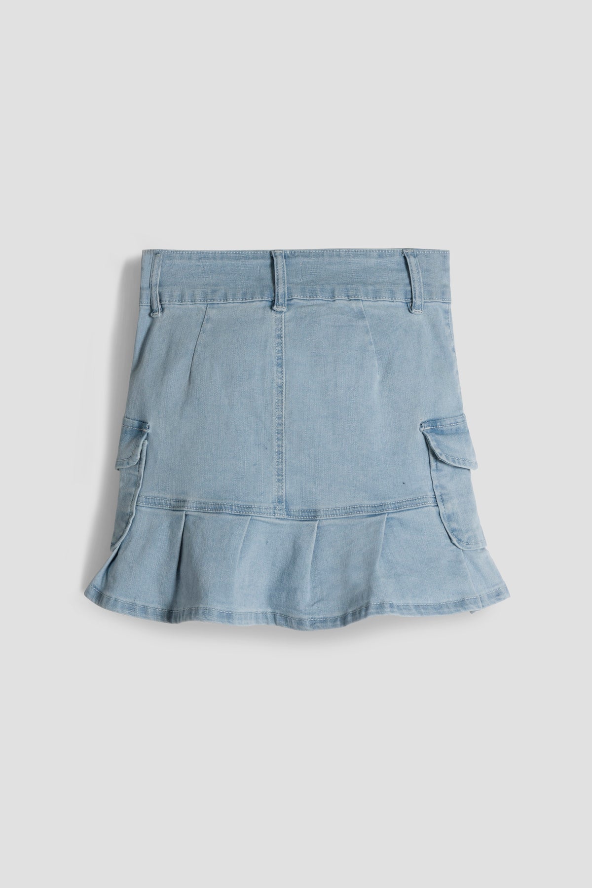 Girls Pleated Denim Mini Skirt a versatile addition to any young fashionista's wardrobe! This mini skirt features stylish pleats that add a touch of sophistication to its design. The 1-button closure with zipper ensures easy wear, while the snap cargo pockets provide both style and functionality. Perfect for pairing with your favorite tops and sneakers, this skirt is ideal for both casual outings and special occasions. Elevate your look with the Girls Cargo Pleated Denim Mini Skirt by YMI and let your unique style shine!