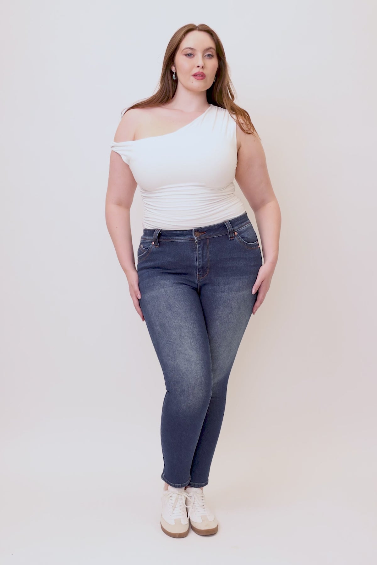 Women's PlusWannaBettaButt Mid Rise Embroidered Skinny Jean by YMI Jeans, where style meets sophistication for the modern woman's denim collection. Crafted with meticulous attention to detail, these jeans redefine casual chic with their flattering fit and intricate embroidered details.