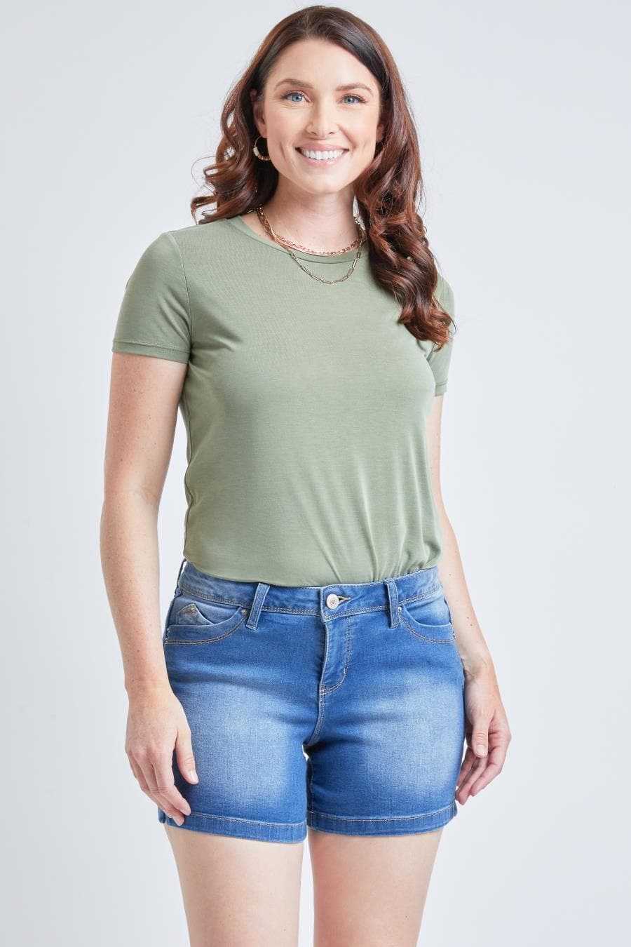 Our most popular style made sustainably! Our Women WannaBettaButt Side Slit Hem Denim Shorts feature heart shaped stitching, a signature pocket shape, and specially engineered contour seams to enhance your curves and achieve a flattering, firmer look! Made with lightweight and stretchy, yet durable recycled micro fibers, our WannaBettaButt recycled fabric denim collection provides you with the right amount of comfort and stretch. Designed to flatter with a mid-rise that sits comfortable in between your hips and belly button and finished with whiskering and light front distressing for some edge. You’ll love the versatility of these shorts. Pair them with a tank or tee and sandals for a laid-back look, or style with a printed blouse and lightweight layer for a dressier feel.