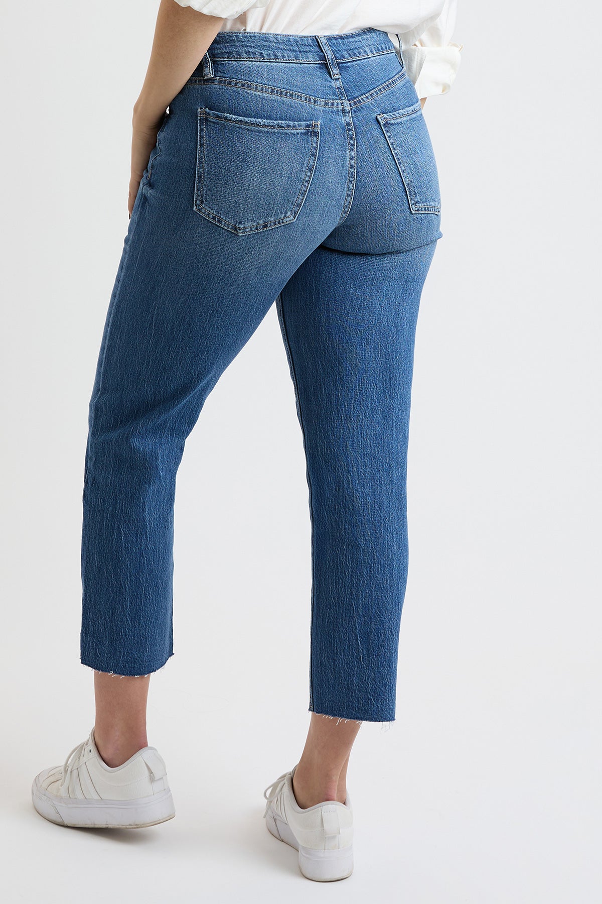 These High Rise Straight Leg Cropped Jeans, designed to flatter and enhance your figure. Featuring a high-rise waist with built-in panels and special construction for tummy control, these jeans provide a smooth, sculpted fit. The side slit detail adds a trendy twist to the straight-leg silhouette, while the raw hem gives them a laid-back, modern vibe. Perfect for pairing with anything from casual tees to stylish blouses, these jeans are the ideal mix of comfort, style, and support.