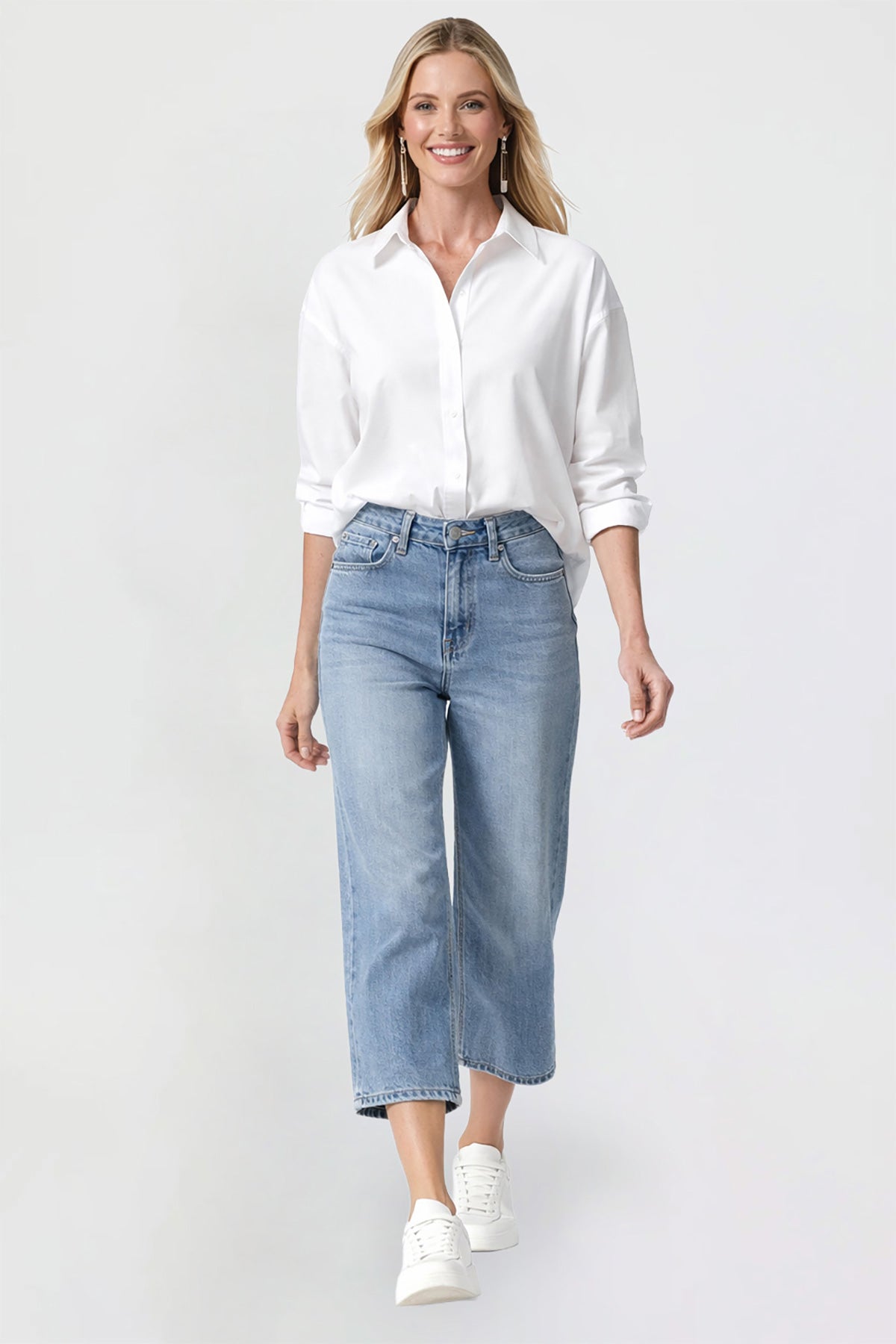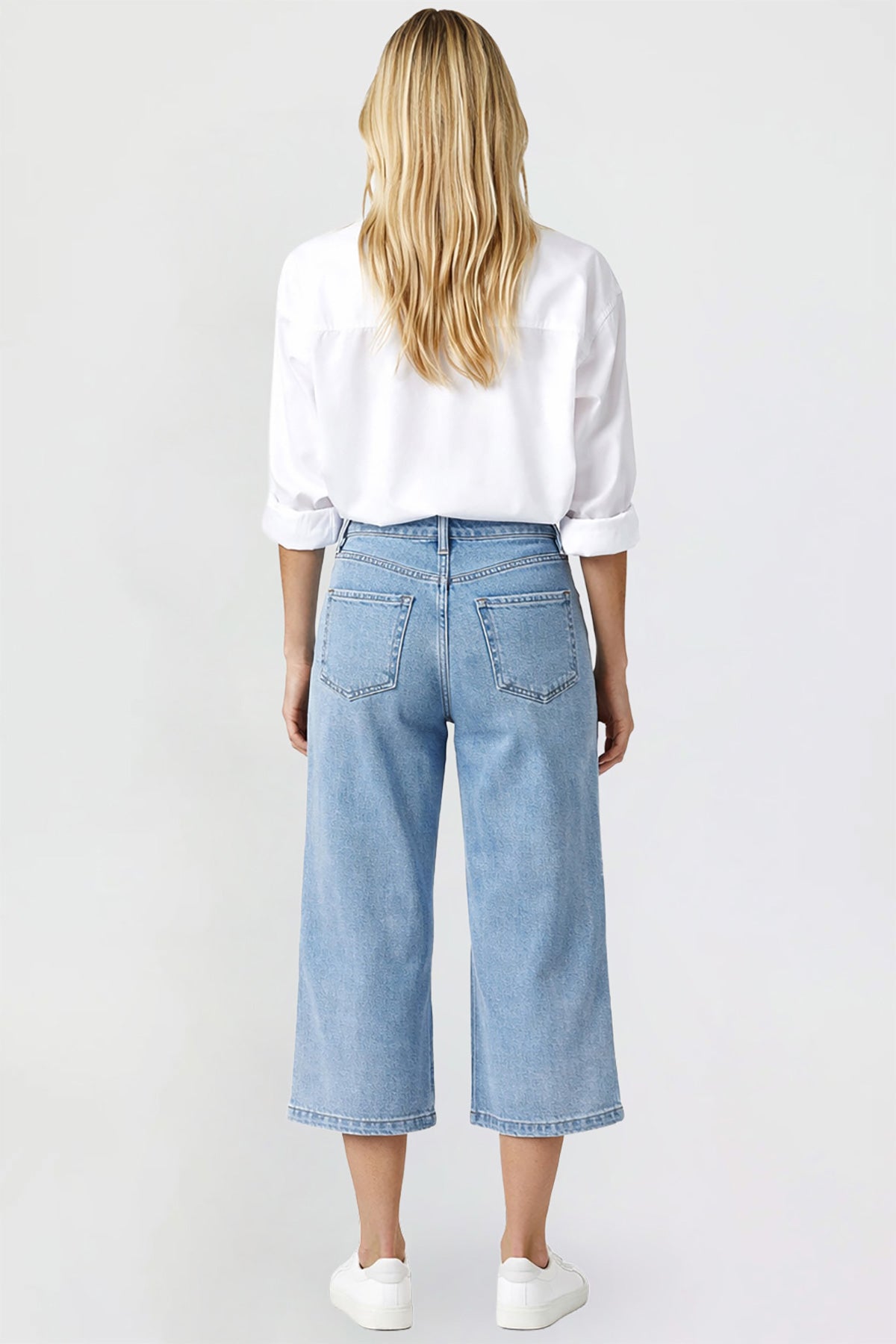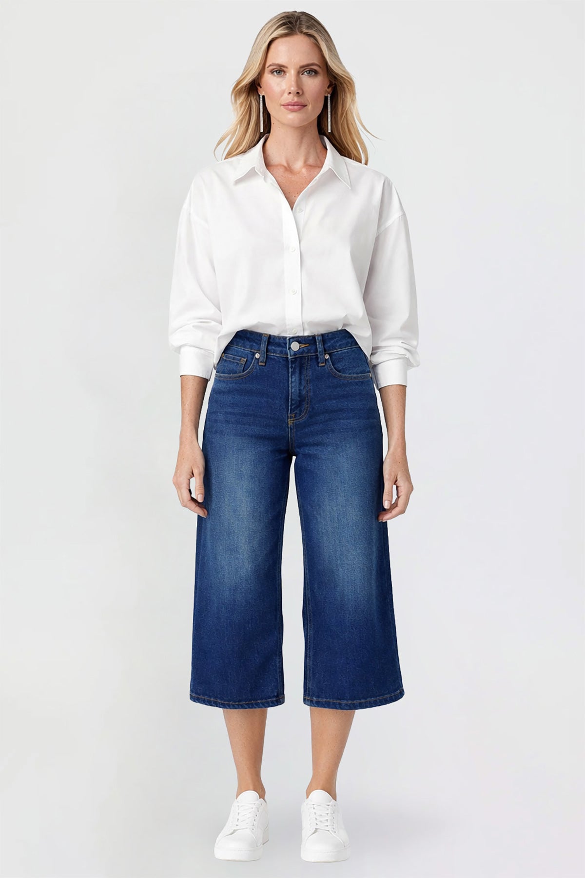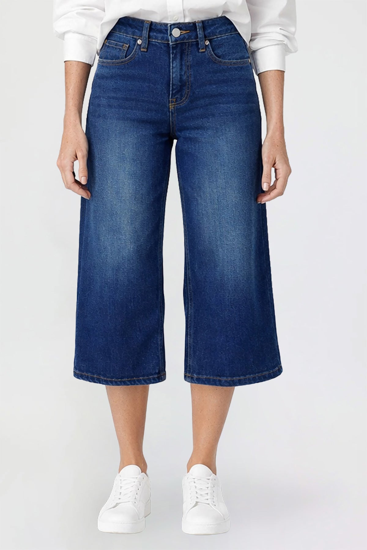 Women's Premium Stretch Cropped Wide Leg Jeans