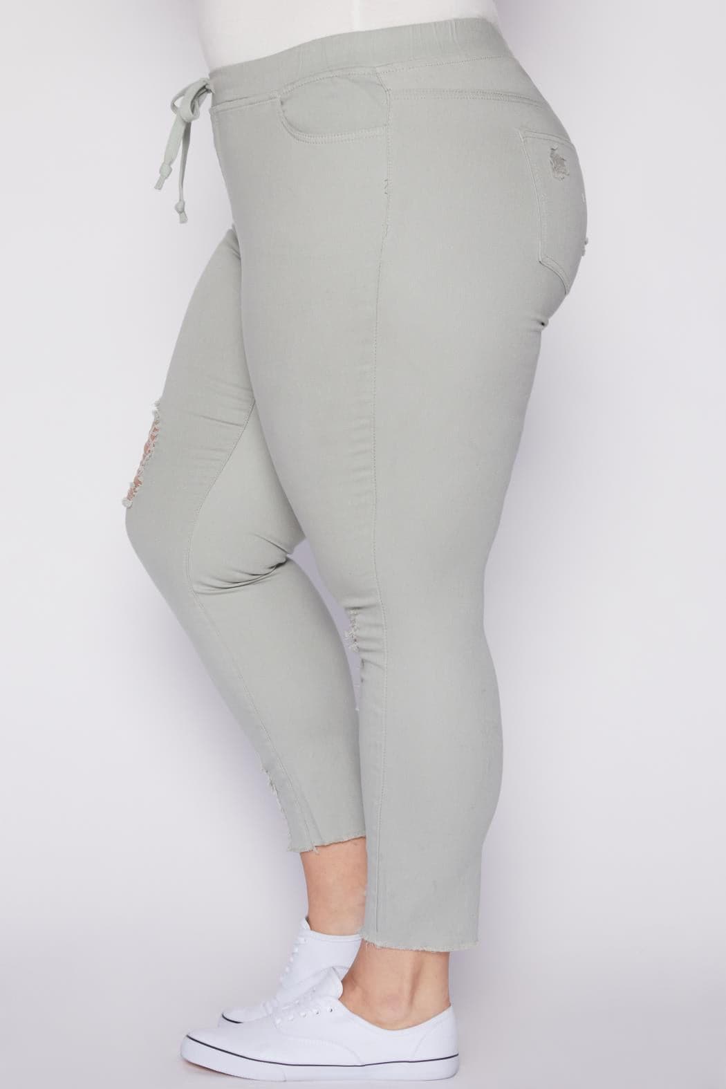 Our Women's Plus Size High-Rise Ankle Joggers are an incredible staple to add to your closet! Featuring front tie, elastic waistband, light distressing, and frayed hem. This garment moves with you throughout the day for a comfortable, flexible fit.