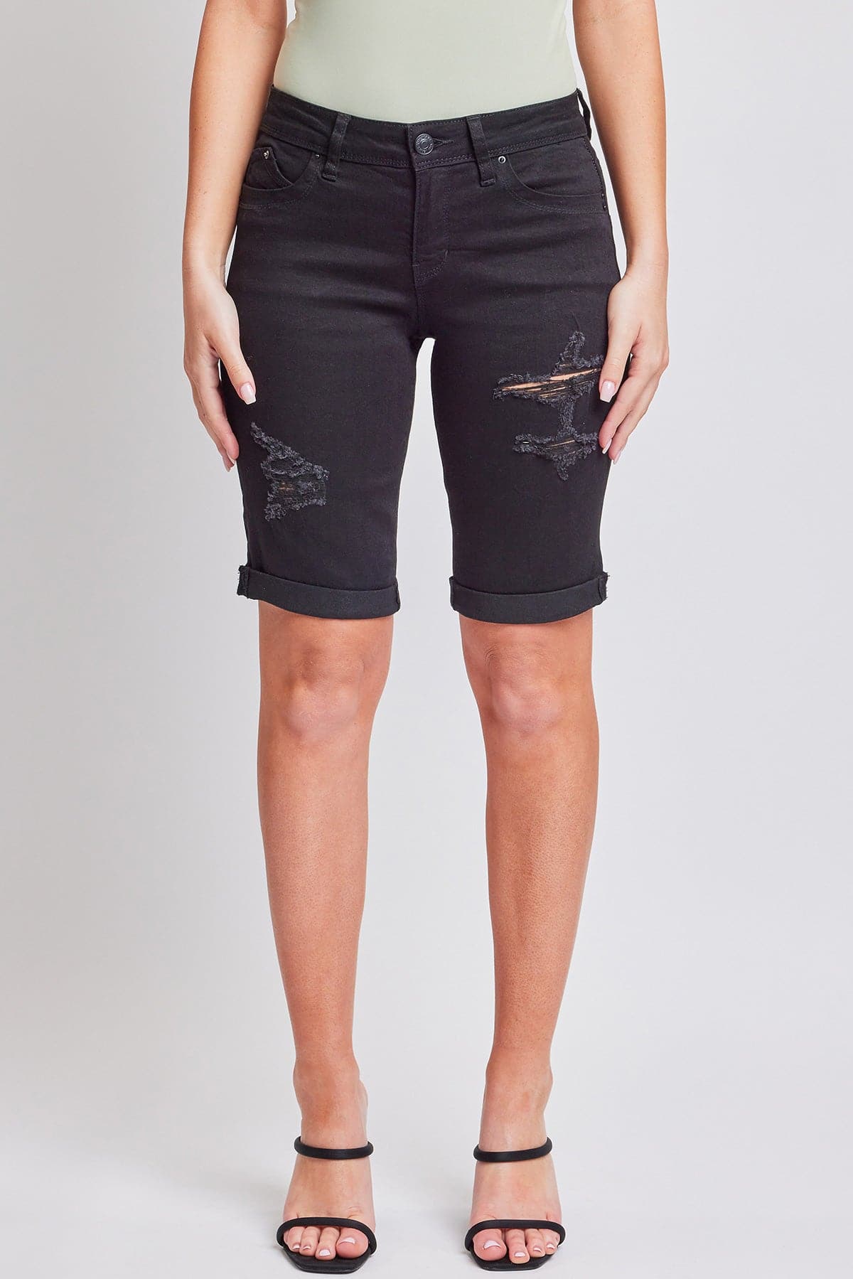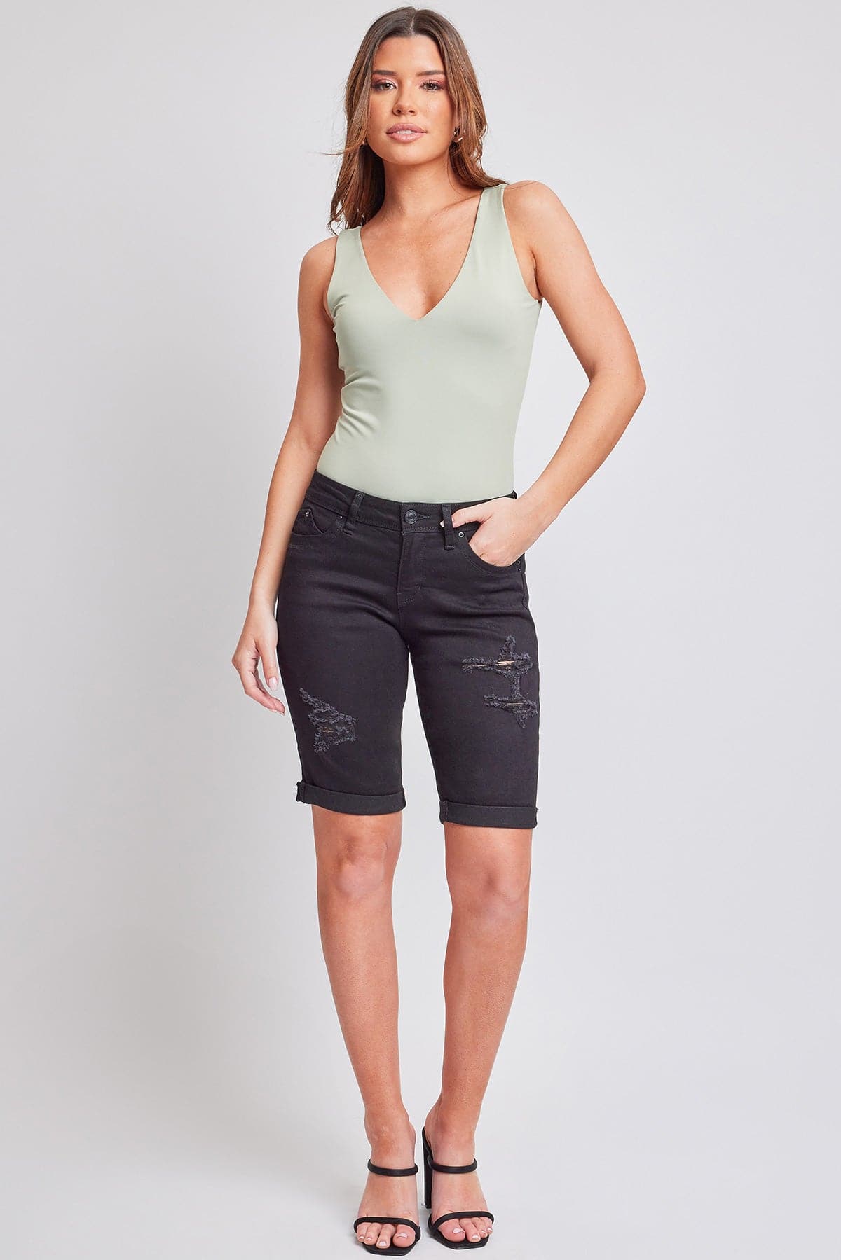 This just in: bermudas are back and sexier than ever! Our Women's WannaBettaButt Bermuda short is super stretchy and features our famous WBB heart shaped stitching, enhancing your natural curves. Wear these casual denim shorts with a crop top or tank and some sneakers, or dress them up with a bodysuit and heeled sandals!