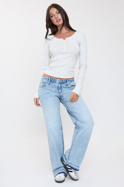 Add a bold touch to your denim collection with these Women’s Low Rise Patchwork Straight Leg Jeans. Featuring unique patchwork distressing, they bring a stylish edge to a classic straight leg fit. Designed with a low rise for a modern look, these jeans include belt loops and a button and zipper fly for easy wear.