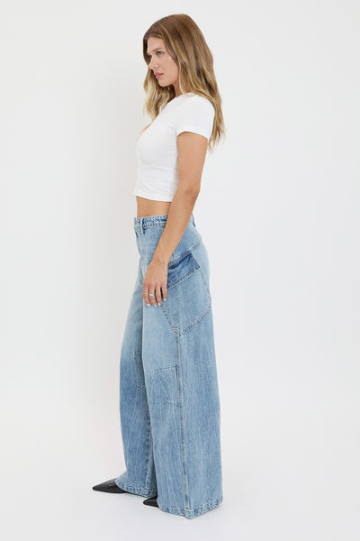 Effortless style meets utility with the Women’s Slanted Cargo Wide Leg Jeans. Featuring slanted cargo pockets and stitching details, this contemporary design balances function with fashion. The wide leg design creates a relaxed, on-trend look, while the button and zipper closure ensures a secure, comfortable fit.