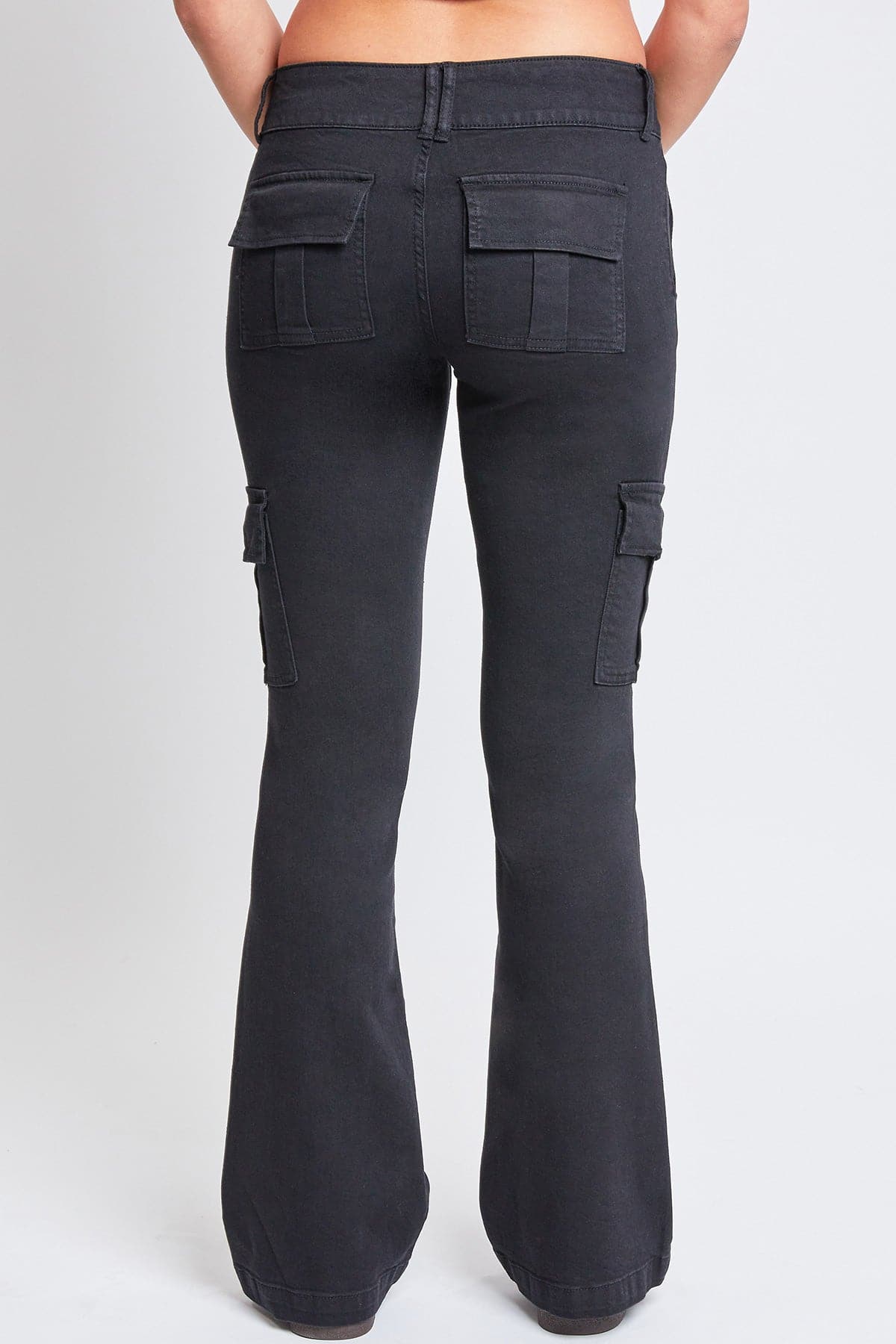 Dare to flare in our Women’s Low Rise Cargo Flare Jeans. This on-trend jean is constructed with midweight stretchy denim for a comfortable yet flattering fit. Features a silhouette that is fitted from the hip through the thigh and flares from the knee to the hem for a balanced sultry look. Detailed with slant front pockets and pleated flap pockets in the back and at the side. Style with your favorite baby tee and sneakers for a trendy ‘fit and chill vibe.