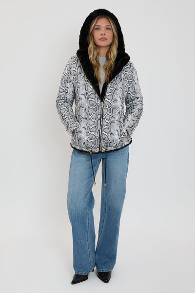 Add some edgy layers to all your go-to outfits this season with our Women's Faux Fur Reversible Jacket. Complete with all standard trademarks: side pockets, hood, faux fur lining, front zip closure, drawstring at hip for comfortable fit, shining hardware and a reversible option.