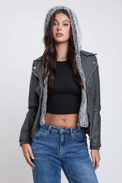 Women's Motto Pleather Jacket with Fur Lining