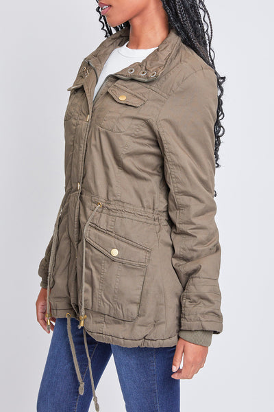 Elevate your outerwear game with this versatile utility jacket, designed for effortless style and cozy comfort. Featuring a plush fur lining and a detachable hood, it’s perfect for adapting to any weather. The snap and zipper closure ensures secure warmth, while patch pockets provide convenient storage for essentials. A waist cinch adds a flattering, tailored silhouette, making this jacket as stylish as it is functional.