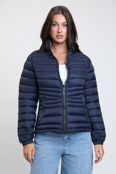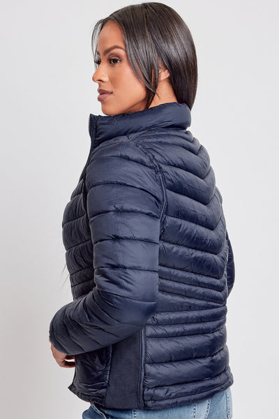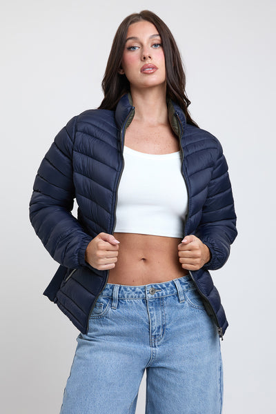 Elevate your style with our 2-in-1 Women's Winter Reversible Puffer Jacket, a must-have for making a lasting impression. This versatile piece serves as the perfect layering companion, ensuring you stay both warm and fashion-forward. Boasting a fitted puffer aesthetic, it features elastic side inserts that gracefully shape the waistline, adding a touch of sophistication to your look. The jacket comes equipped in two contrasting colors, making it reversible. Offering a blend of convenience and chic detailing.