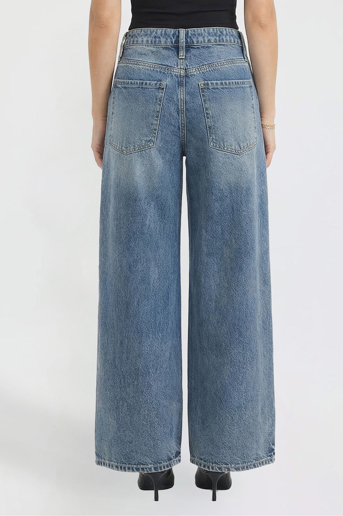 Bold and on-trend, these low-rise jeans feature a super wide leg for a relaxed, statement-making look. Designed with a classic button and zipper fly and traditional five-pocket styling, they bring effortless edge to your everyday denim.
