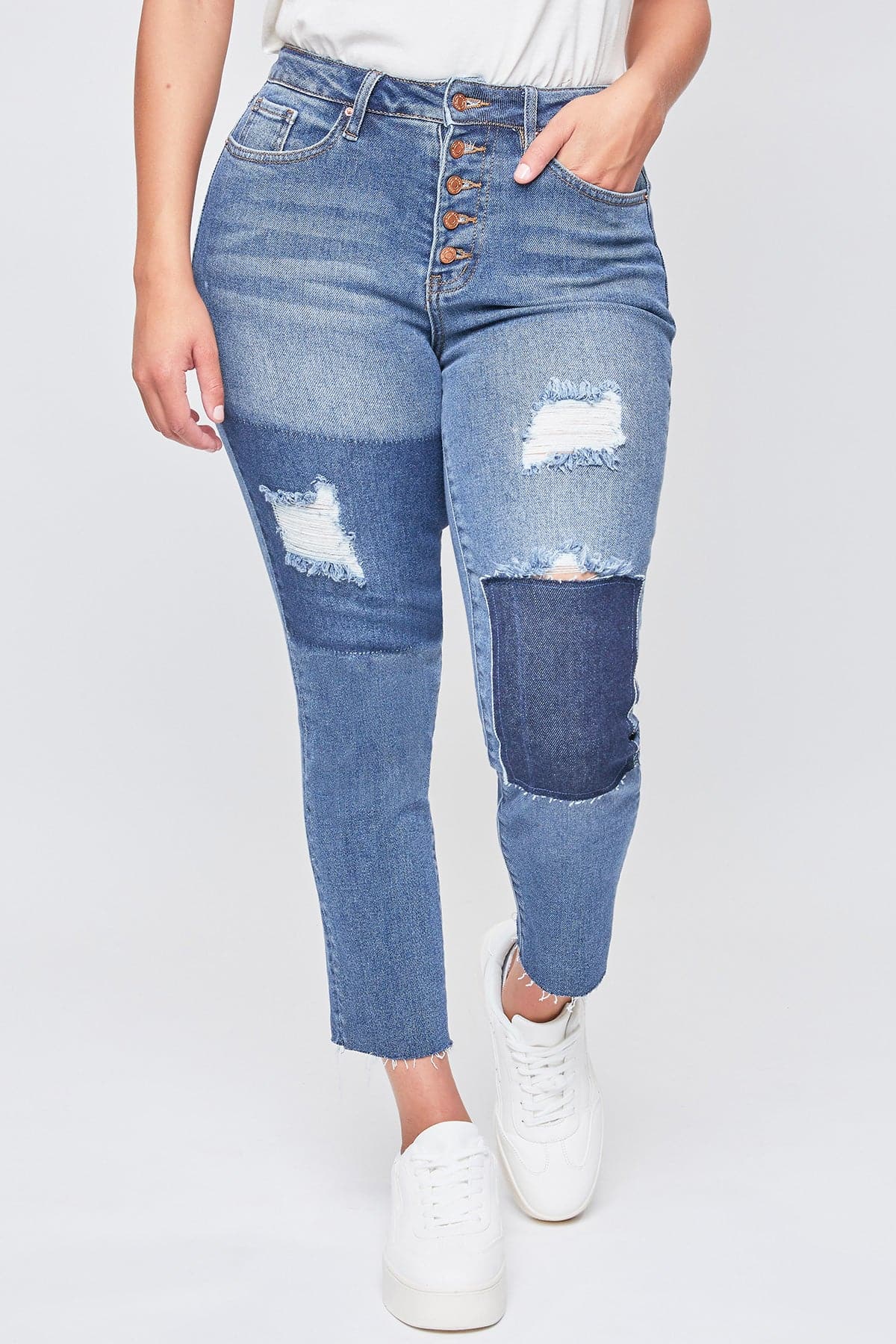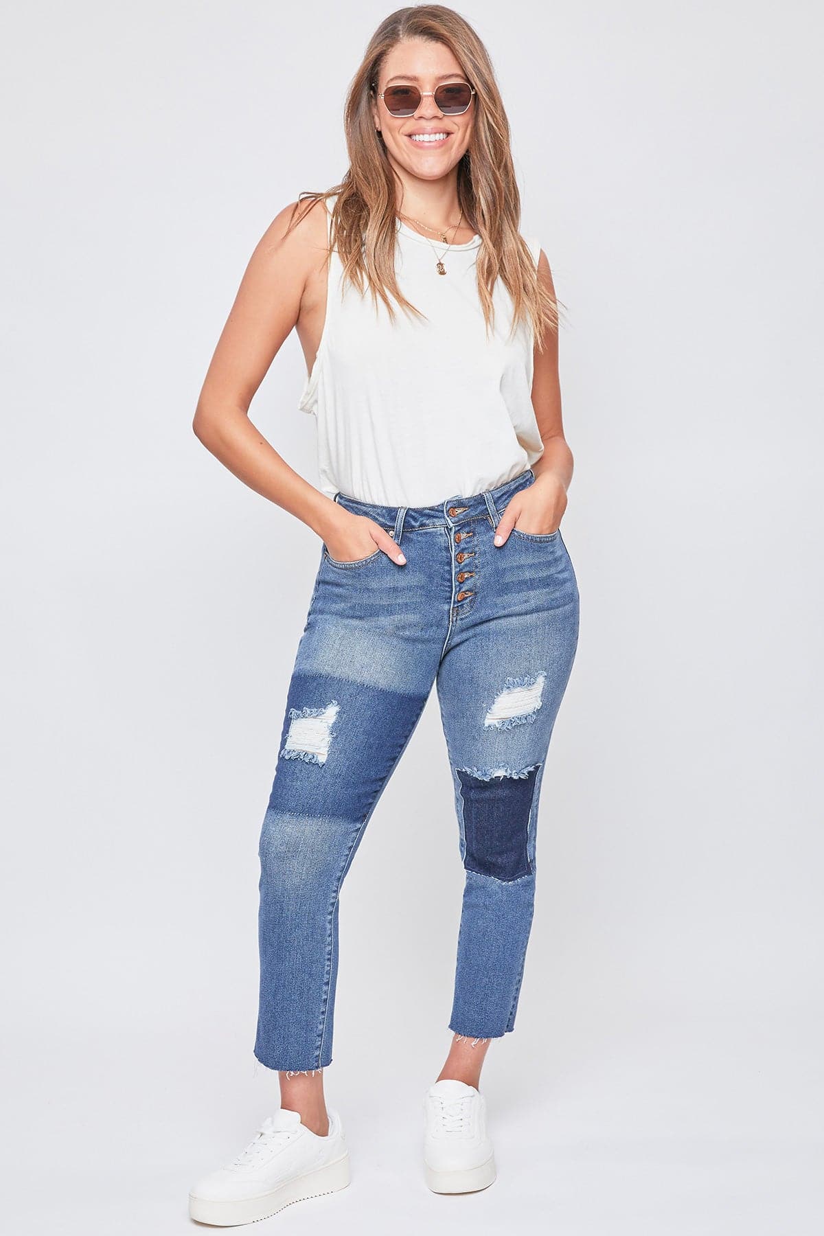 Women’s Vintage Dream Exposed Button Fly Raw Hem Ankle Jeans