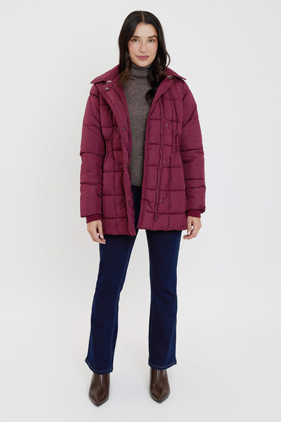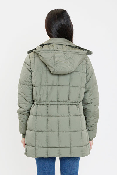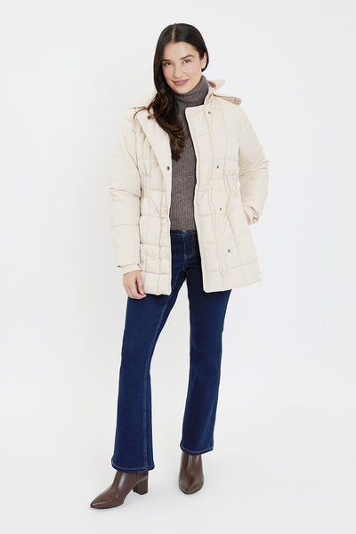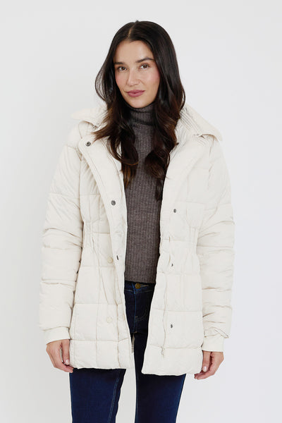 The puffer construction provides excellent insulation, ensuring you stay cozy during chilly days. The cinched waist detail adds a flattering, feminine silhouette, giving you a tailored look that enhances your natural shape.