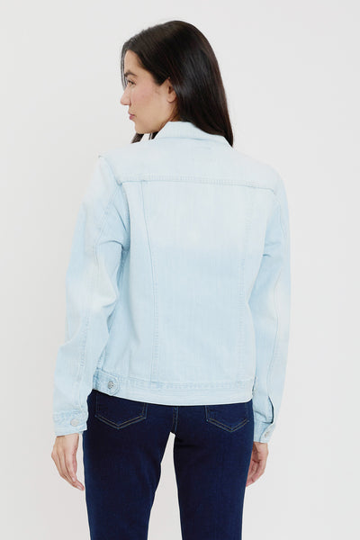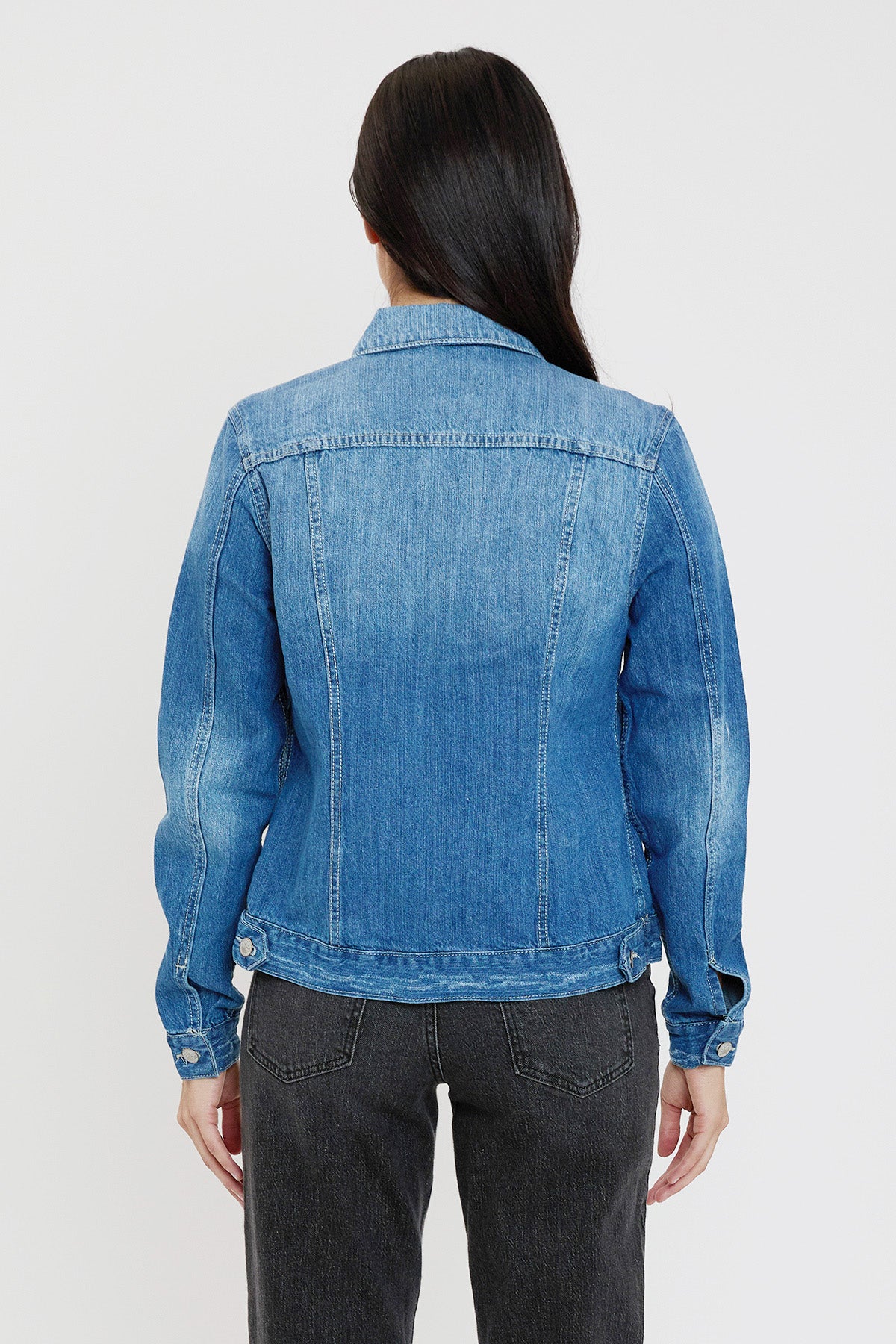 Our Distressed Denim Jacket features a trendy twist on a wardrobe staple. Featuring light fading and distressing for a worn-in, vintage vibe. This jacket is made for the days you want to stand out and be a little bold with your look. Pair with black denim, or wear over your favorite dress! Complete the look with some chic booties!