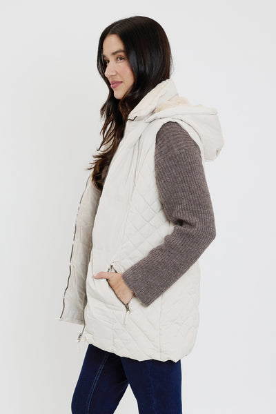 The puffer vest design provides lightweight insulation, making it ideal for staying warm without feeling bulky. The standout feature is the faux fur hood, which adds an element of elegance and sophistication, while also providing extra protection against the cold.