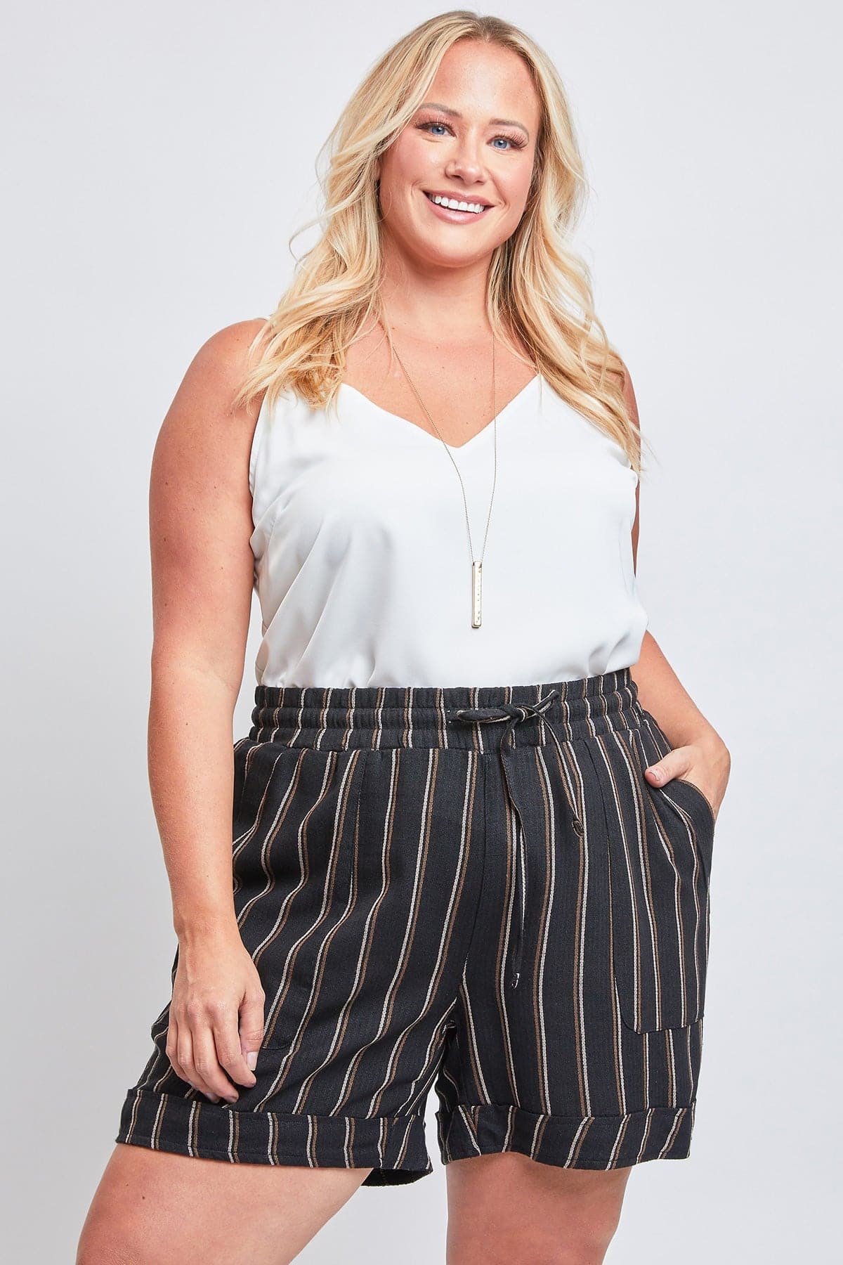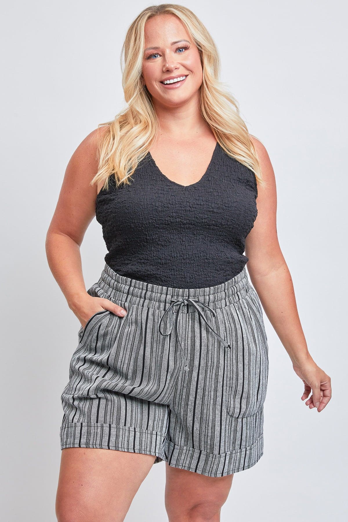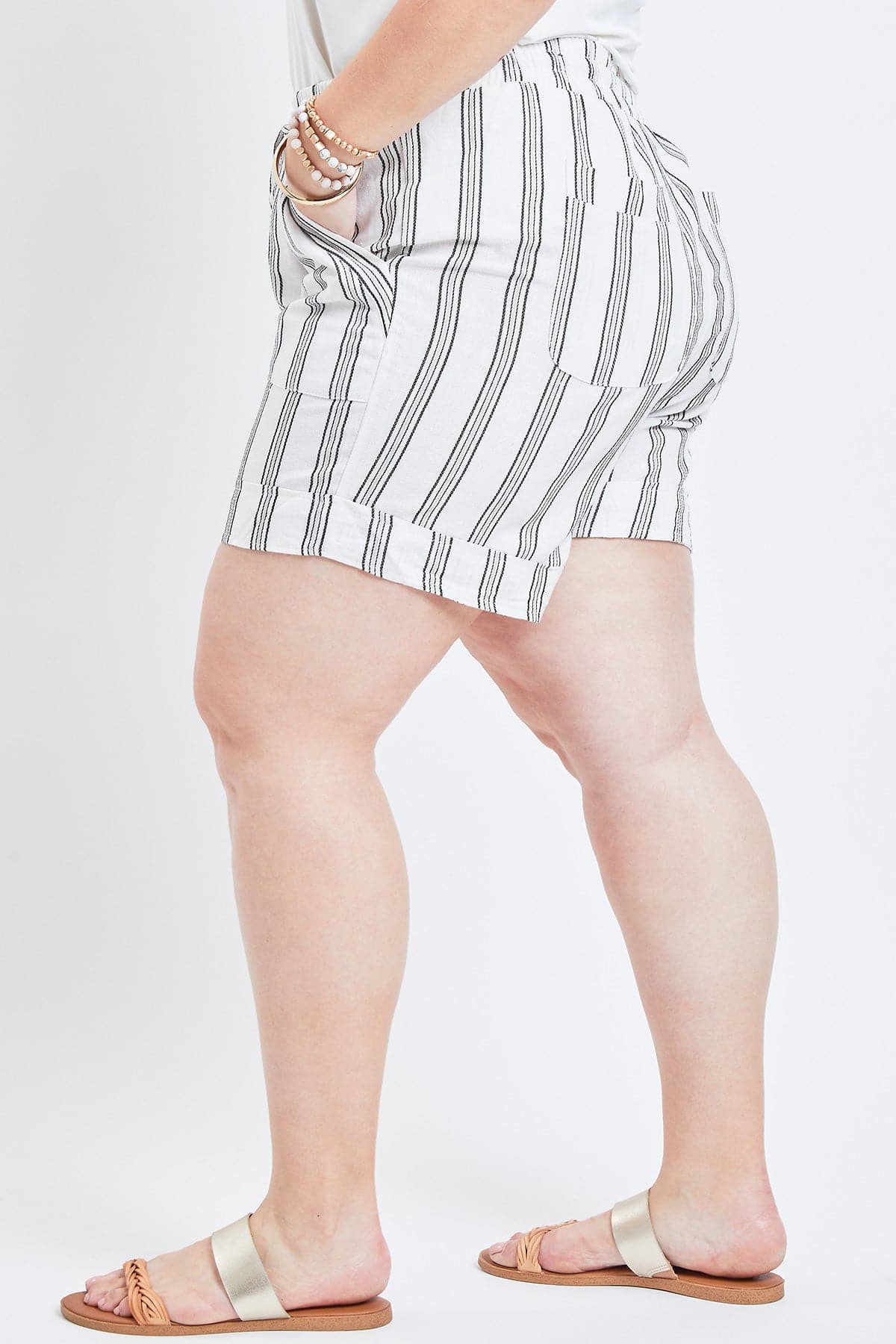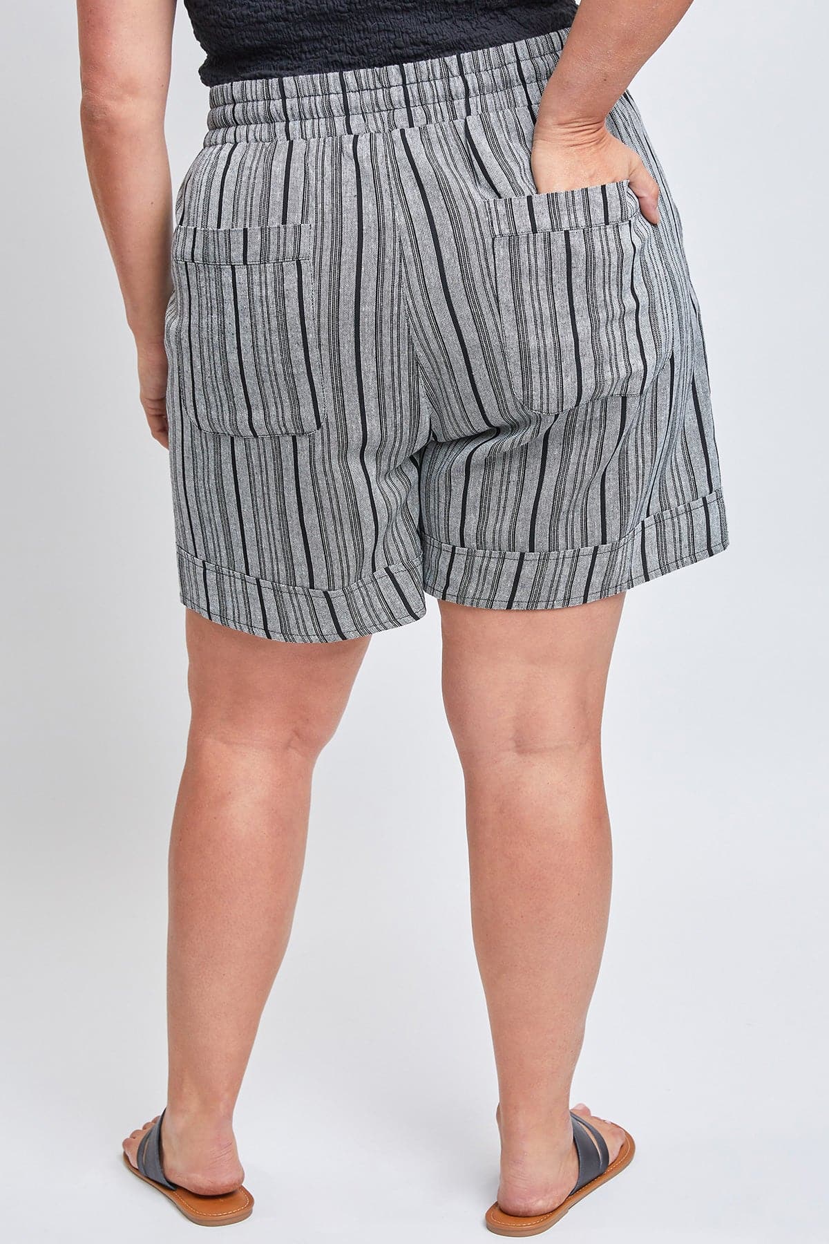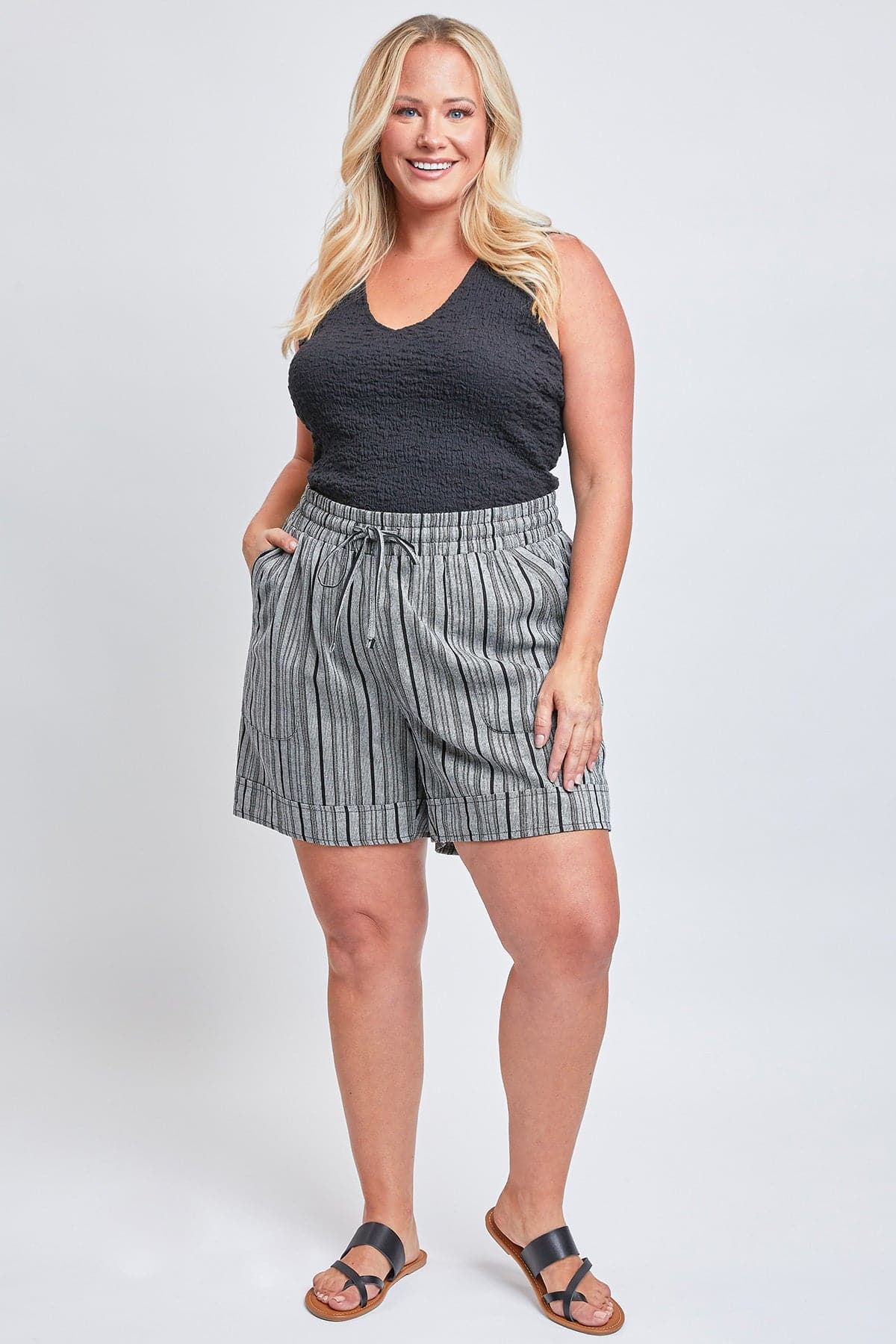 Our Women's Plus Size Cuffed Linen Shorts with Pockets are an incredible staple for your next vacation or beach trip. With these, you can soak up the sun in style and comfort! This breezy short is detailed with a front tassel drawstring, elastic waistband, and porkchop pockets. The lightweight style is designed to move with you throughout the day for a comfortable, flexible fit. Style with an airy tank top and sandals for the perfect day spent lounging with a good book or strolls along the shore.