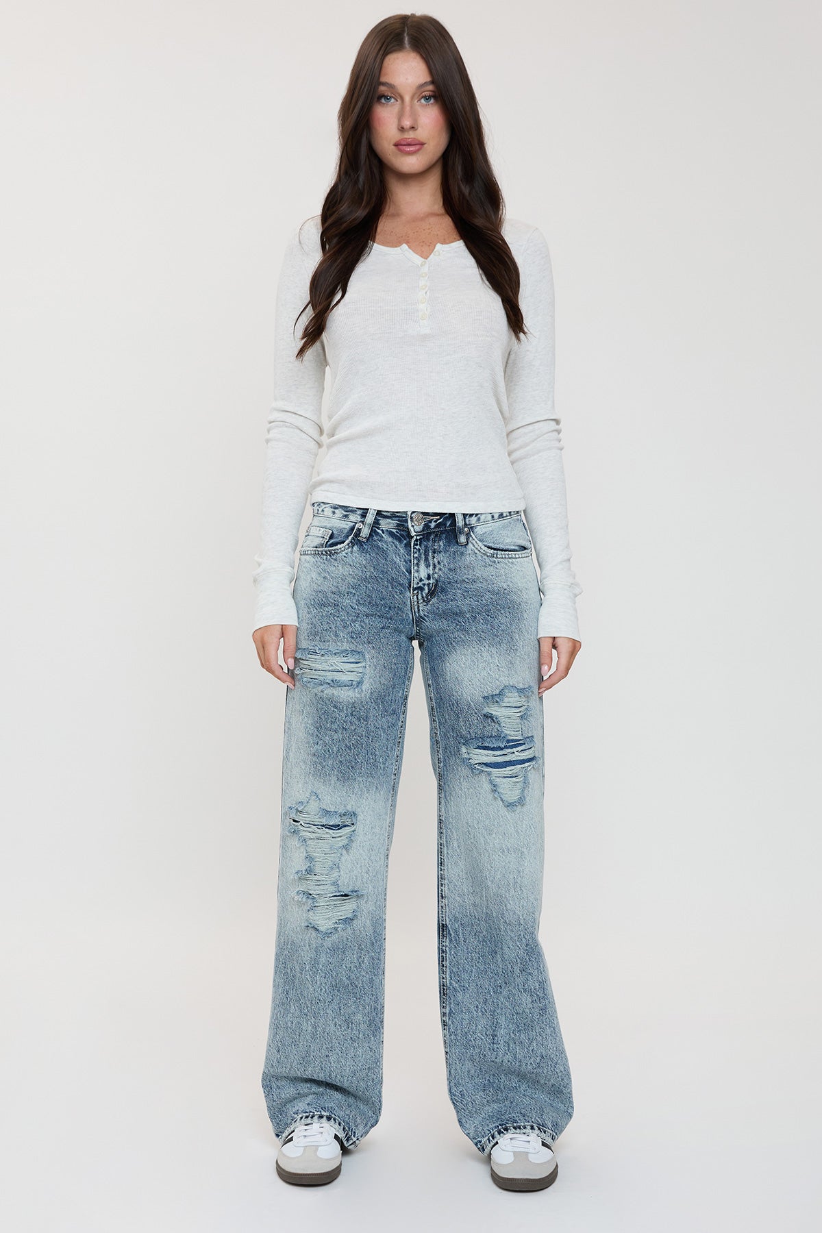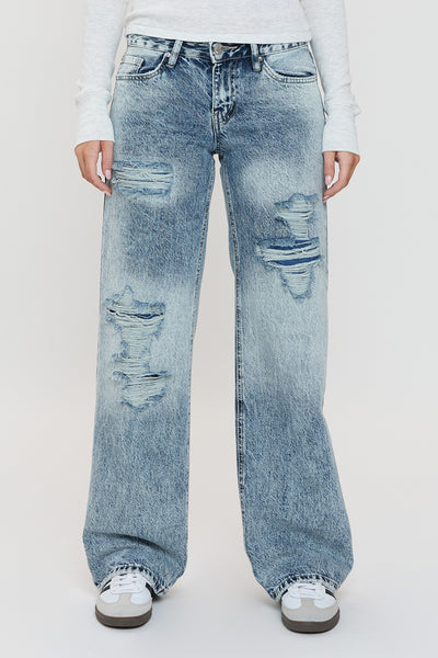 Featuring a low-rise waist, these jeans sit comfortably below the hips, enhancing your natural shape with a relaxed fit. The wide leg design creates a dramatic and stylish silhouette, perfect for making a fashion-forward statement.