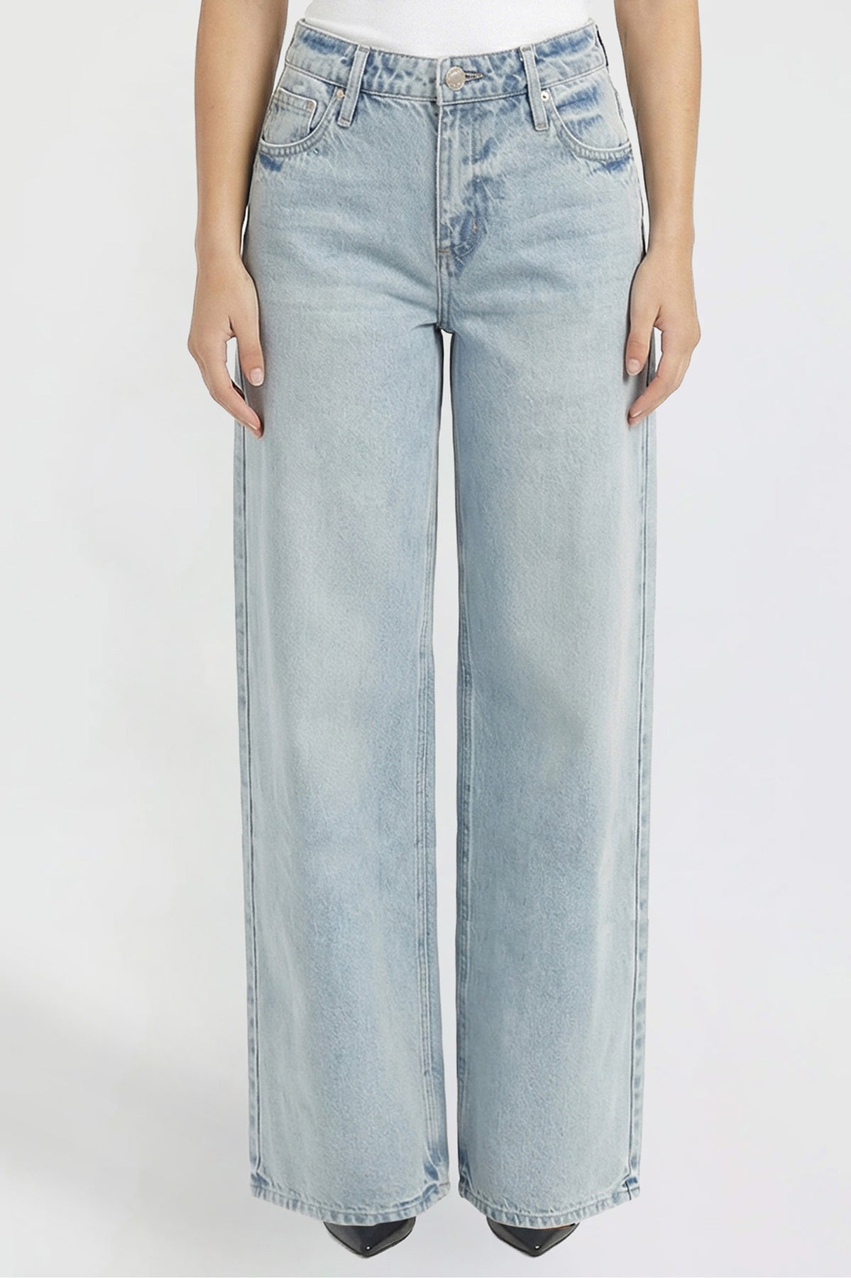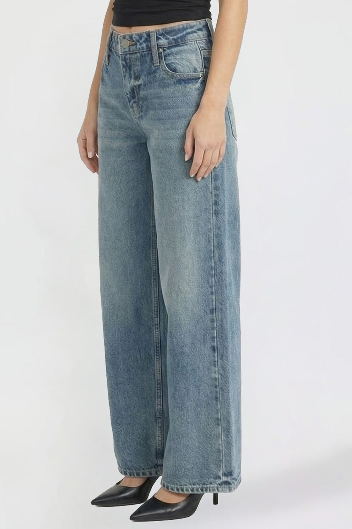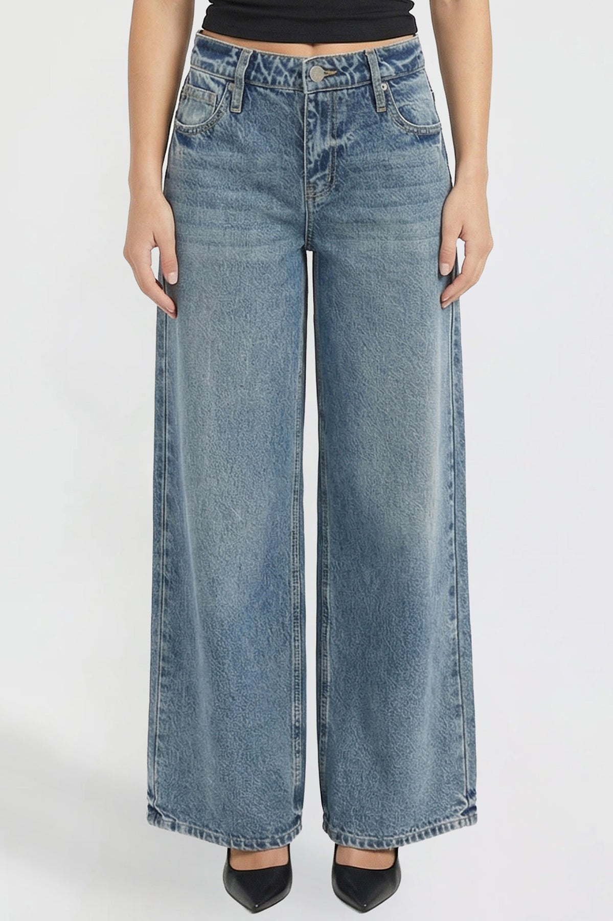 Bold and on-trend, these low-rise jeans feature a super wide leg for a relaxed, statement-making look. Designed with a classic button and zipper fly and traditional five-pocket styling, they bring effortless edge to your everyday denim.