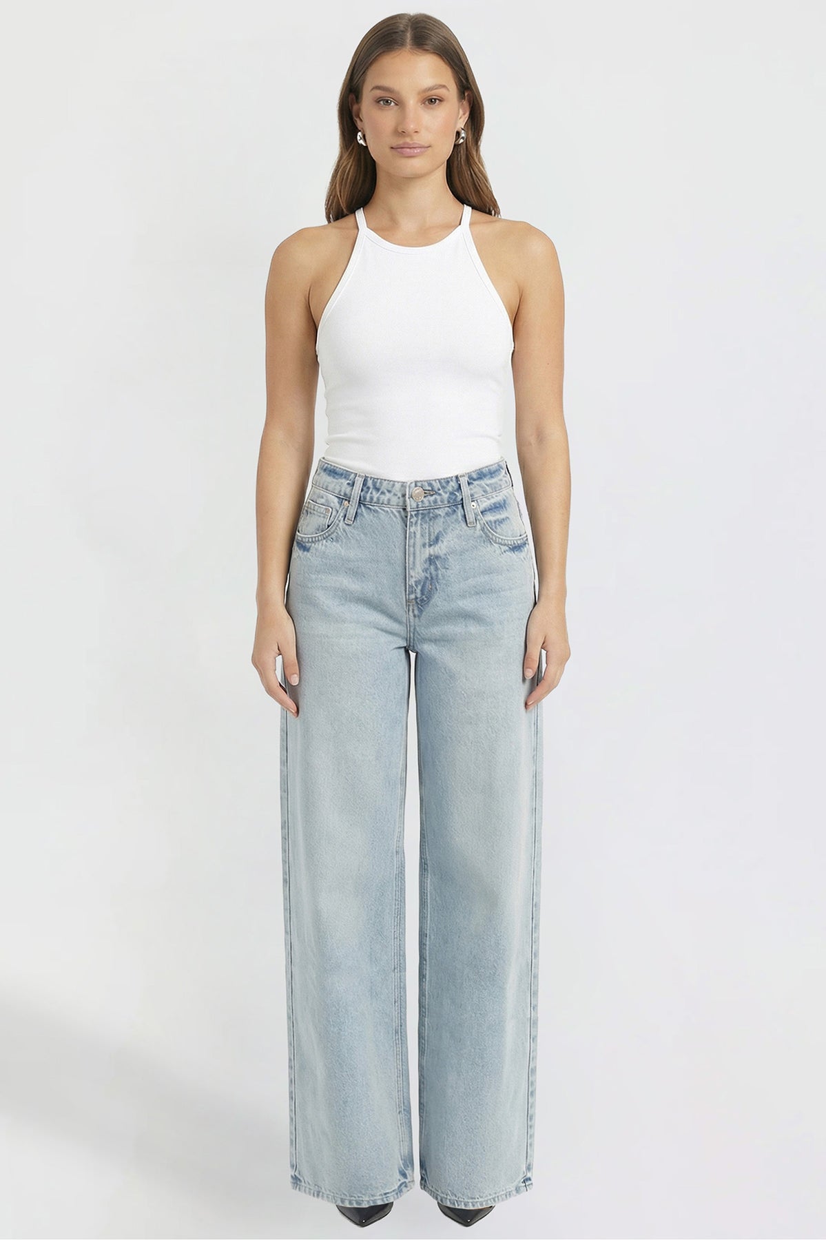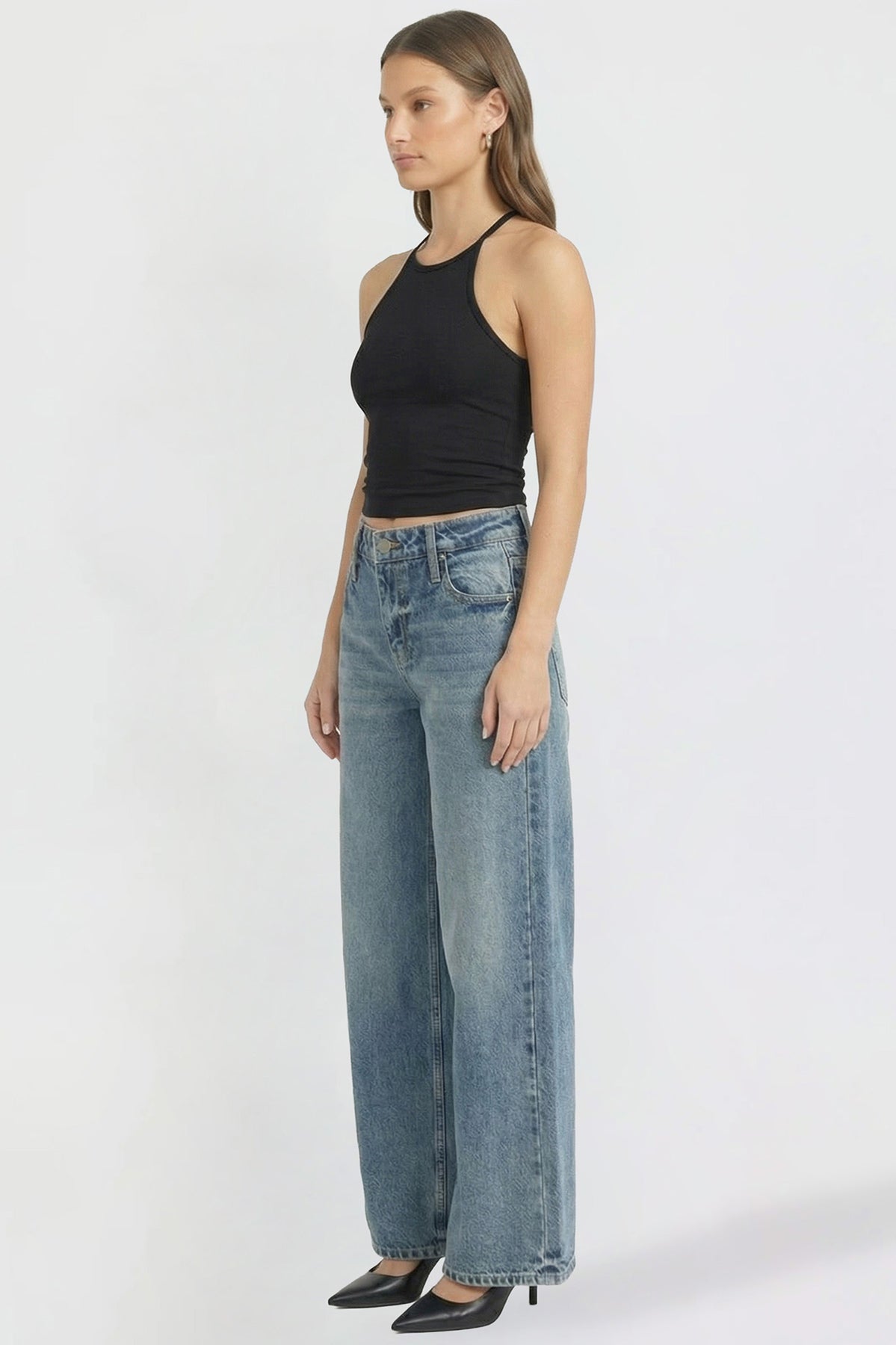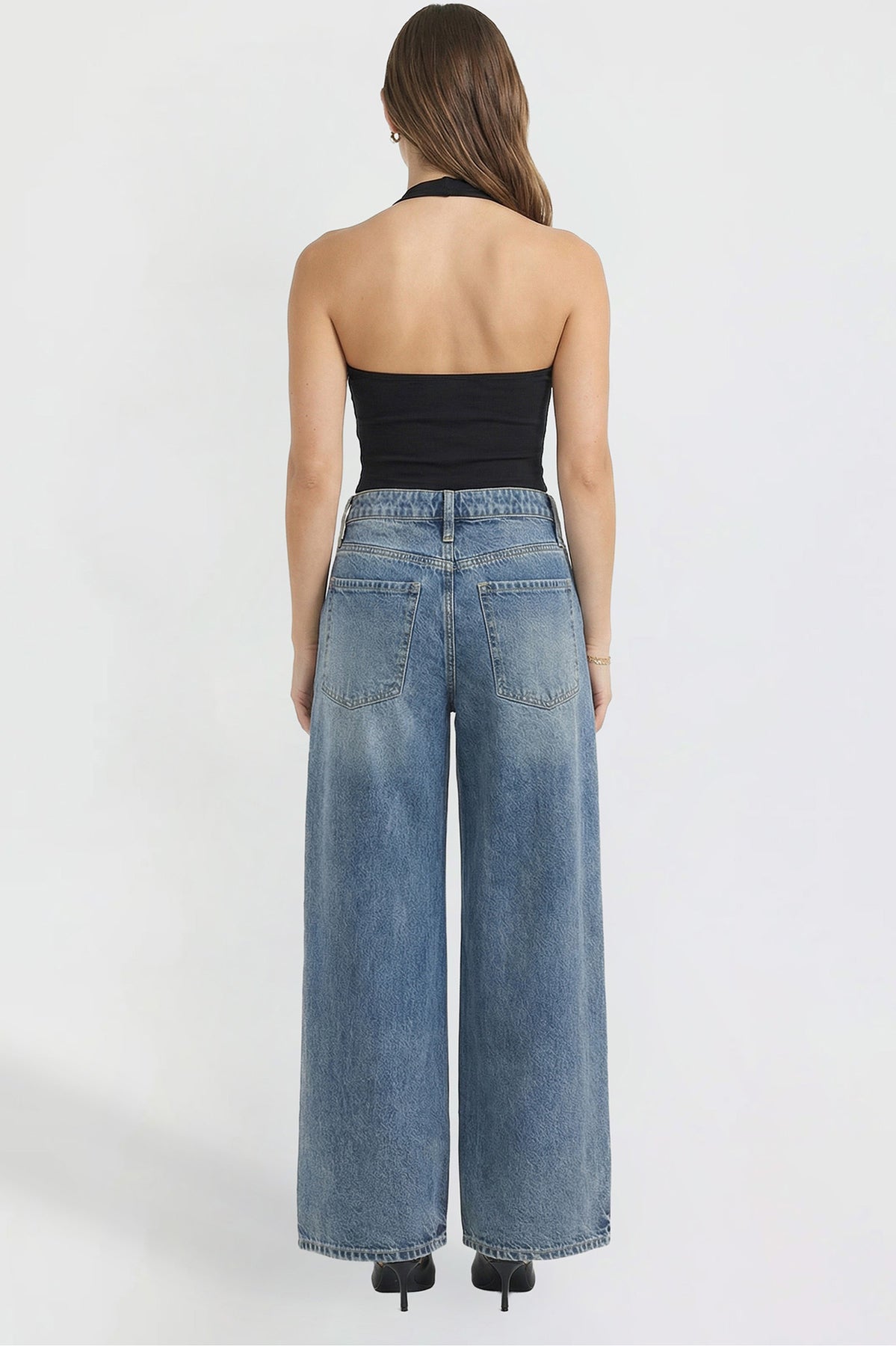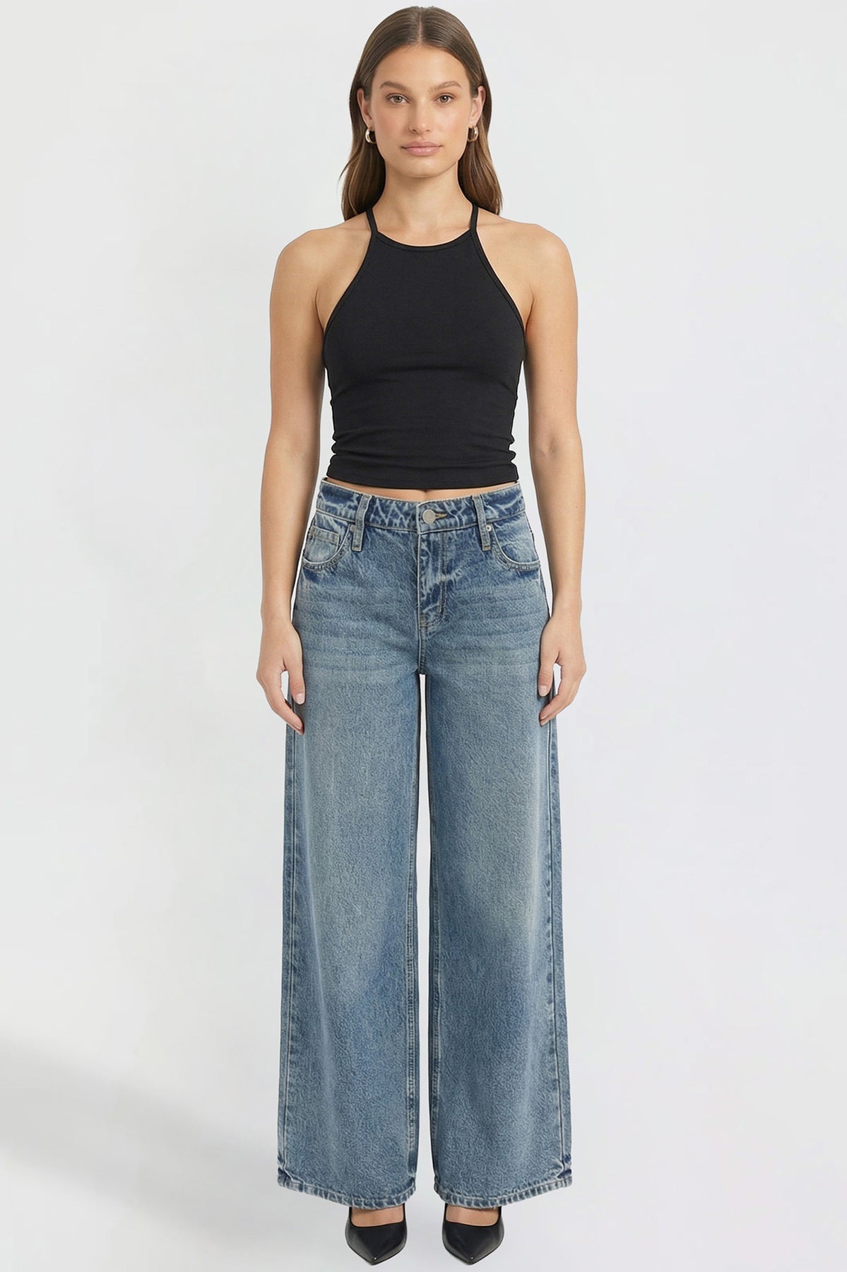 Bold and on-trend, these low-rise jeans feature a super wide leg for a relaxed, statement-making look. Designed with a classic button and zipper fly and traditional five-pocket styling, they bring effortless edge to your everyday denim.