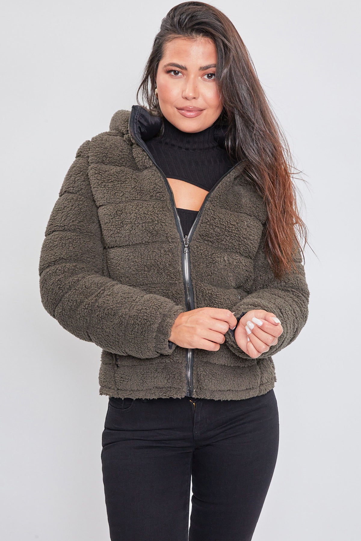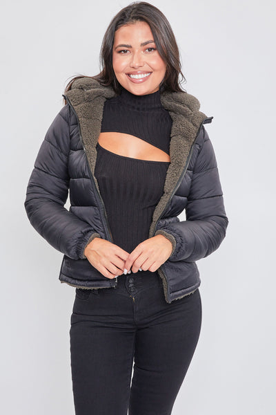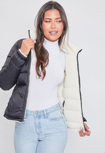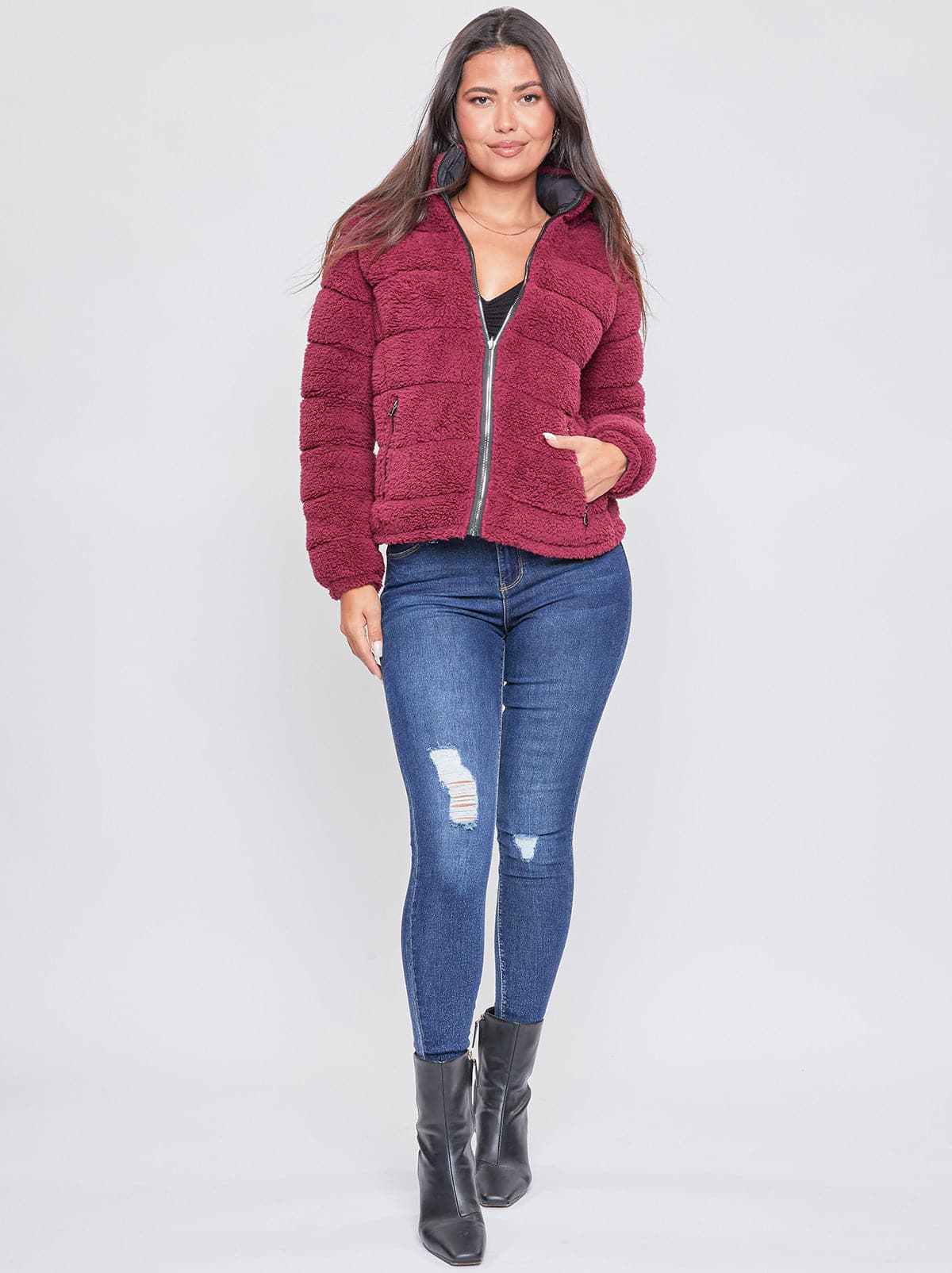 It’s all about warmth and versatility this winter! Stay cozy in our Poodle Fur Reversible Jacket! This jacket is reversible and can be worn either way, depending on the weather or your mood for the day! One side features a wind, water, and snow-resistant fabric, while the other side features a warm and cozy Sherpa material. Also designed with a removable zippered hoodie and two front pockets on each reversible side. Style this jacket with a long sleeve tee or bodysuit, jeans, and boots for a chic winter look, or pair it with leggings and sneakers for an athletic, cozy look!